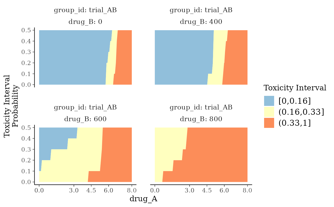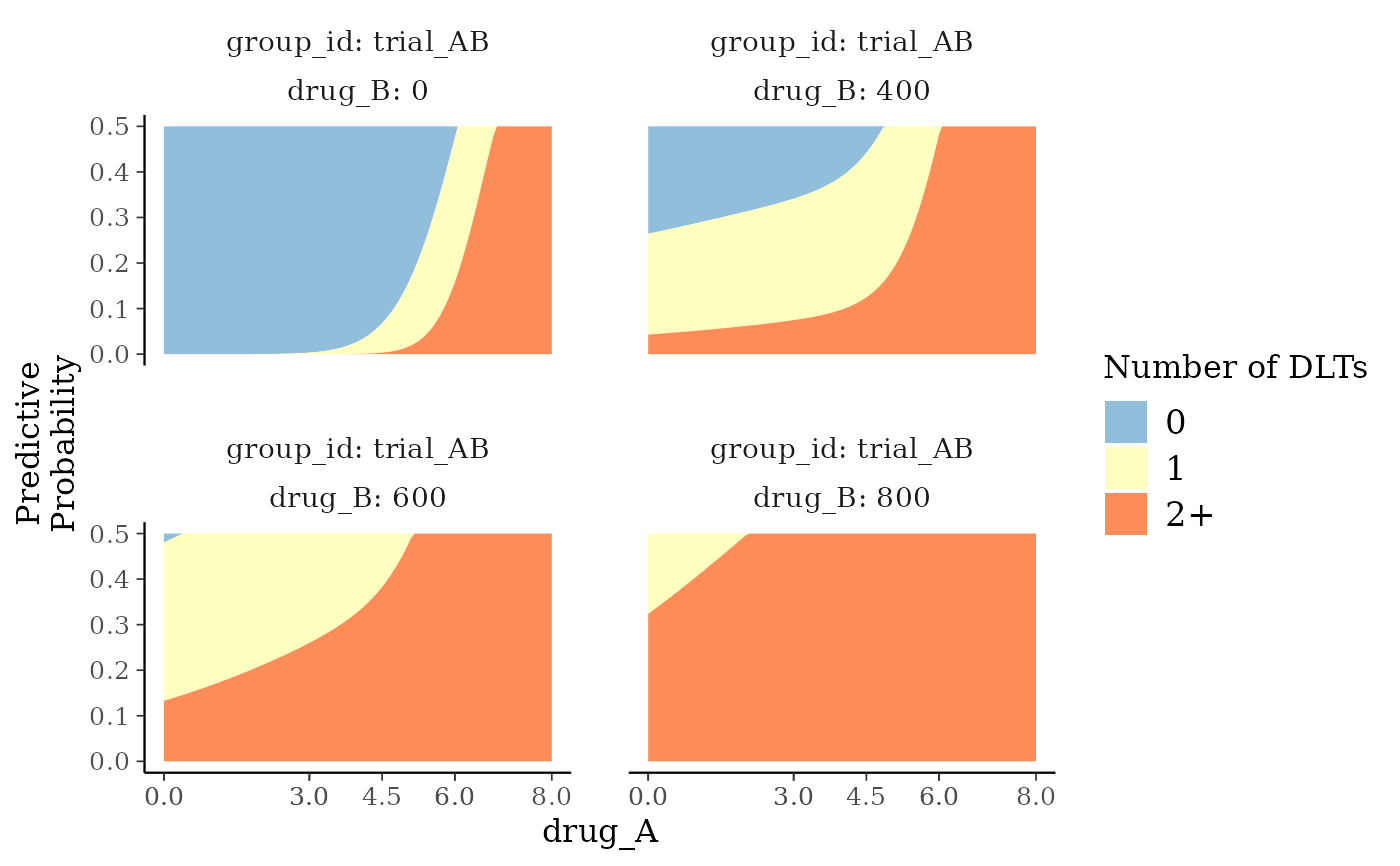 groupcan be a character vector, tidy parameter(s) of the formgroup = vars(...), or a formula to be passed directly toggplot2::facet_wrap(). Forblrm_trialmethods, it defaults togroup_id, plus all entries ofsummary(blrm_trial, "drug_info")$drug_nameexcept the first, which is mapped tox.- xlim